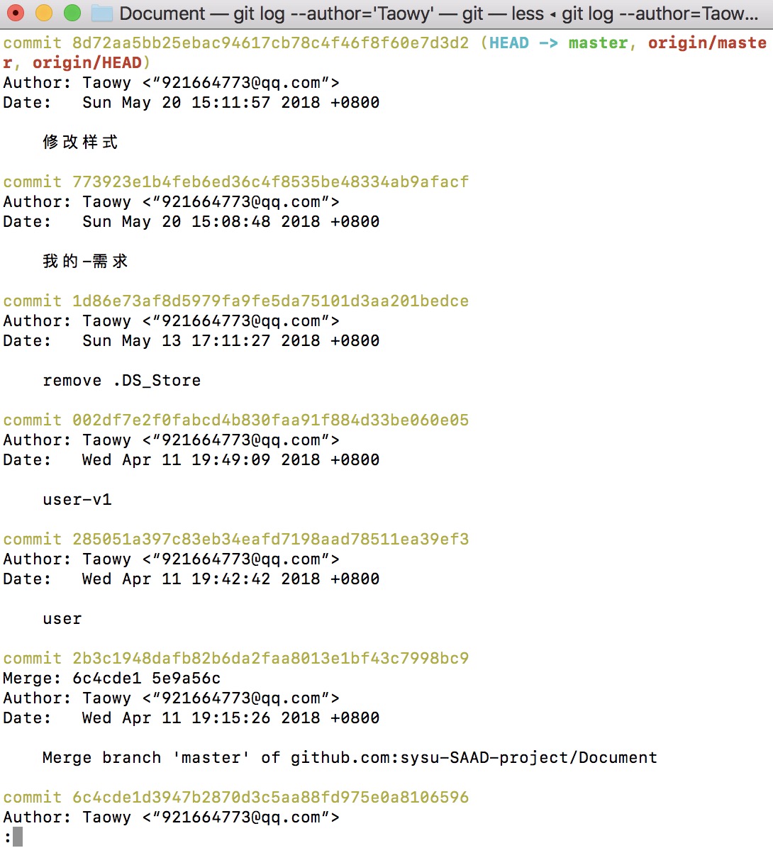 - Document:(提交邮箱问题无法显示,换为git log方式显示)